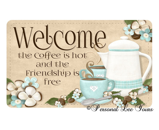 Wreath Sign * Welcome The Coffee Is Hot * 3 Sizes * Lightweight Metal