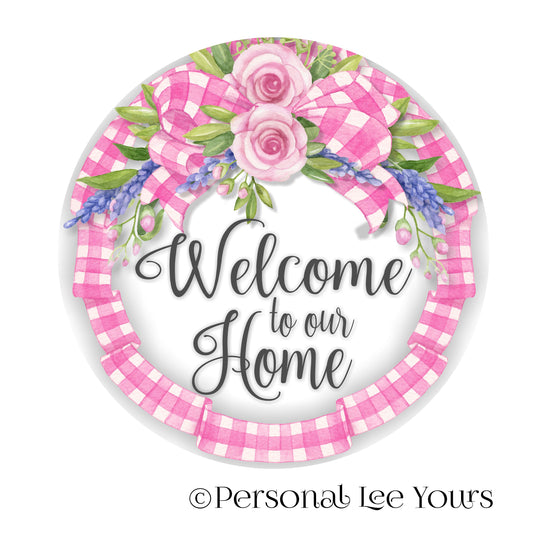 Metal Wreath Sign * Pink Bow Welcome * Round * Lightweight