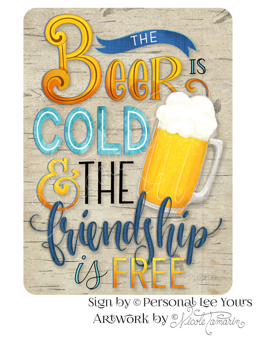 Nicole Tamarin Exclusive Sign * The Beer Is Cold & The Friendship Is Free * Vertical * 2 Sizes * Lightweight Metal