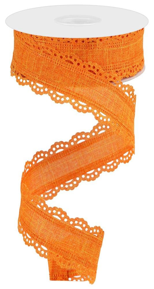 Wired Ribbon * Scalloped Edge * Solid Orange Canvas * 1.5" x 10 Yards * RGC130220