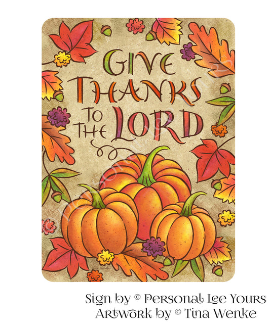 Tina Wenke Exclusive Sign * Give Thanks To The Lord * Pumpkins * Vertical * 2 Sizes * Lightweight Metal
