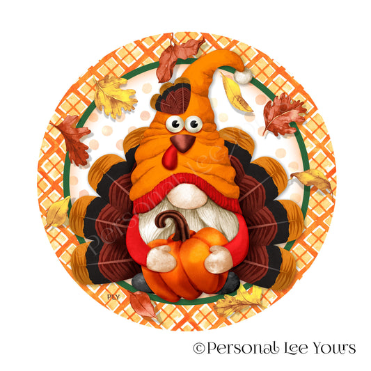 Wreath Sign * Thanksgiving * Turkey Gnome * Round * Lightweight Metal