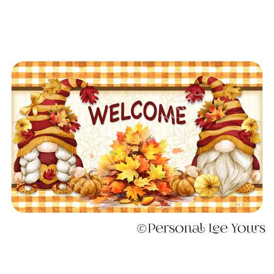 Wreath Sign * Welcome Fall Gnome * Horizontal * 4 Sizes * Lightweight Metal