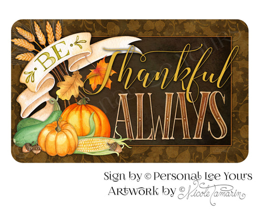 Nicole Tamarin Exclusive Sign * Be Thankful Always * Horizontal * 3 Sizes * Lightweight Metal