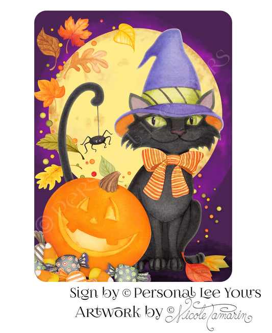 Nicole Tamarin Exclusive Sign * Happy Haunting Black Cat * Vertical * 2 Sizes * Lightweight Metal