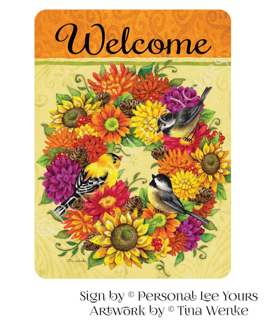 Tina Wenke Exclusive Sign * Songbirds Wreath Welcome * Vertical * 2 Sizes * Lightweight Metal