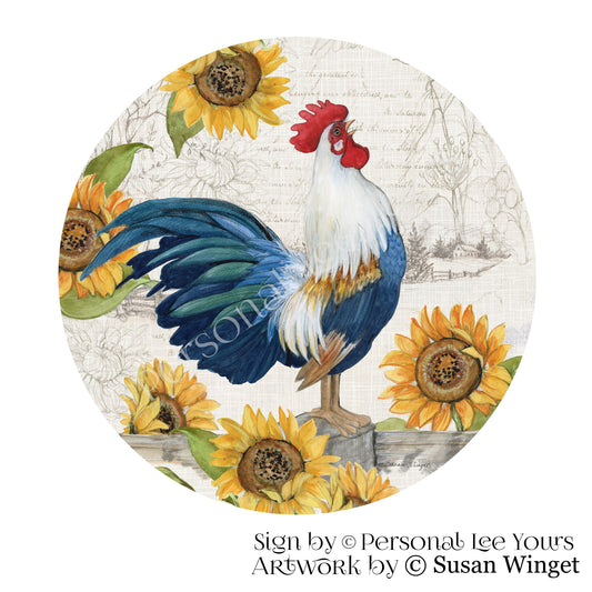 Susan Winget Exclusive Sign * Sunflower Rooster * Round * Lightweight Metal