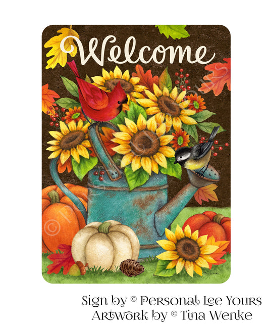 Tina Wenke Exclusive Sign * Fall Watering Can Welcome * Vertical * 2 Sizes * Lightweight Metal