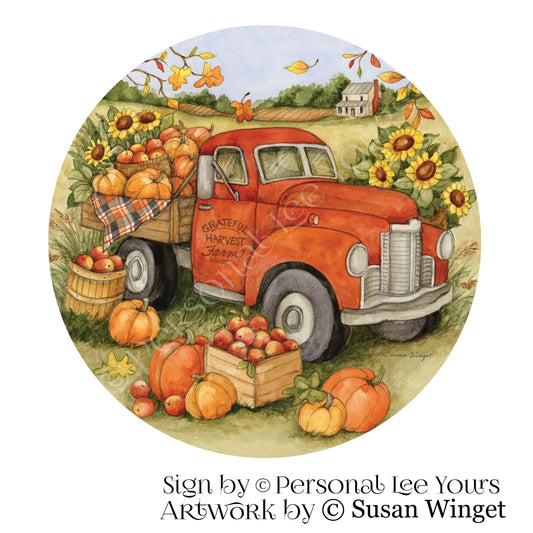 Susan Winget Exclusive Sign * Grateful Harvest Truck * Round * Lightweight Metal
