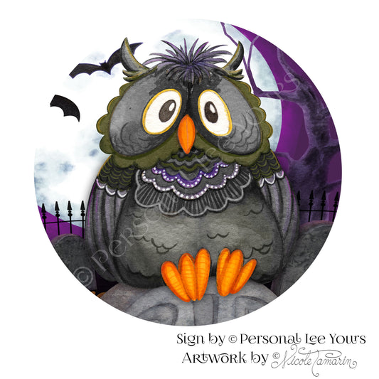 Nicole Tamarin Exclusive Sign * Oliver ~ The Halloween Owl * Round * Lightweight Metal