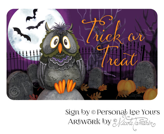 Nicole Tamarin Exclusive Sign * Oliver Owl - Trick or Treat * Horizontal * 3 Sizes * Lightweight Metal