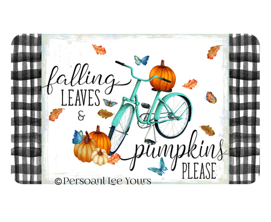 Fall Wreath Sign * Falling Leaves & Pumpkins Please * 3 Sizes * Lightweight Metal