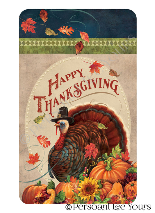 Holiday Wreath Sign * Happy Thanksgiving * Turkey & Pumpkins * 3 Sizes * Lightweight