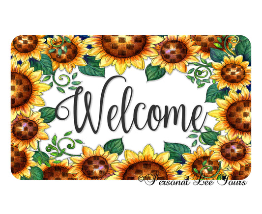 Nicole Tamarin Exclusive Sign * Autumn Sunflowers Welcome * Horizontal * 3 Sizes * Lightweight Metal