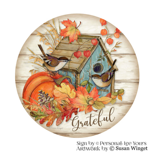 Susan Winget Exclusive Sign * Autumn Birdhouse * Round * Lightweight Metal