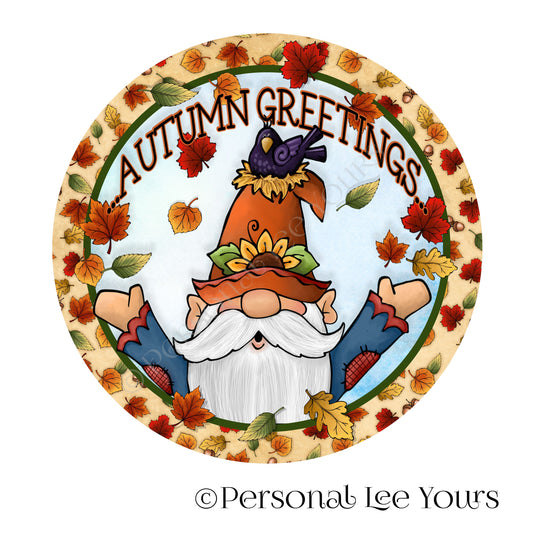 Fall Wreath Sign * Autumn Greetings * Gnome * Round * Lightweight Metal
