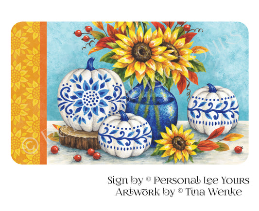 Tina Wenke Exclusive Sign * Blue And White Pumpkins * Horizontal * 3 Sizes * Lightweight Metal