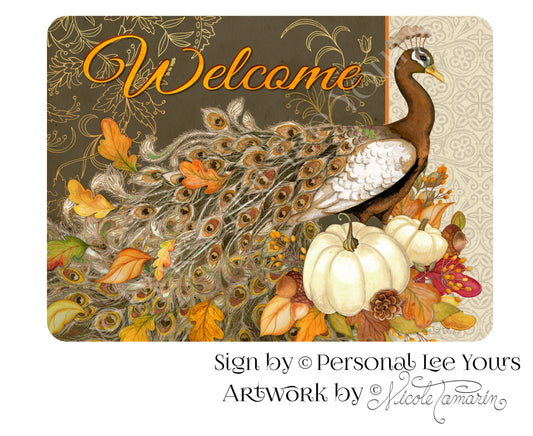 Nicole Tamarin Exclusive Sign * Fall Peacock Welcome* 2 Sizes * Lightweight Metal