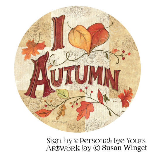 Susan Winget Exclusive Sign * I Love Autumn * Round * Lightweight Metal