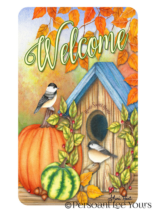 Fall Wreath Sign * Autumn Time Welcome * 3 Sizes * Lightweight Metal