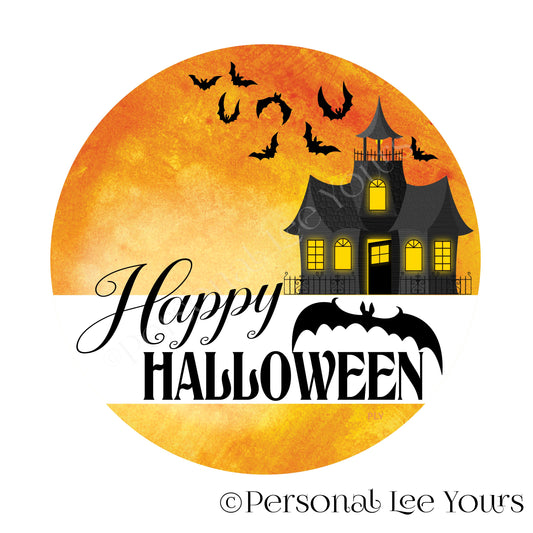 Halloween Wreath Sign * Happy Halloween Bat House * Round * Lightweight Metal