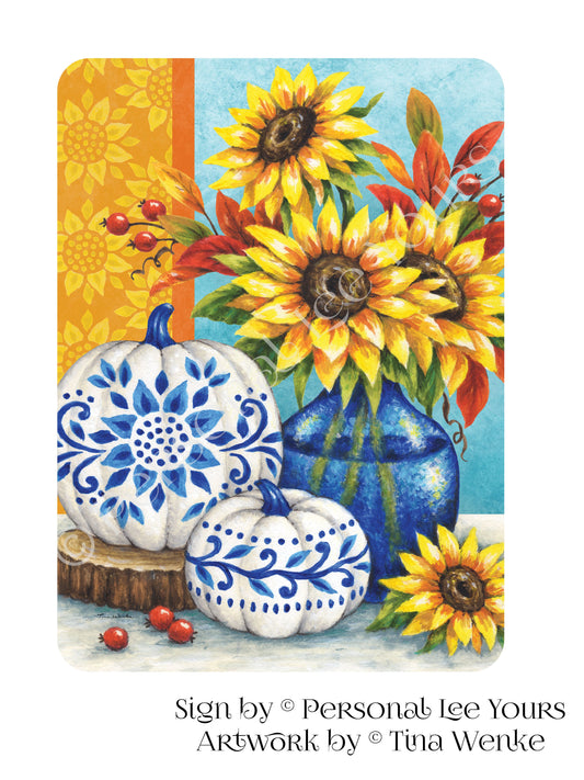 Tina Wenke Exclusive Sign * Blue And White Pumpkins * Vertical * 2 Sizes * Lightweight Metal