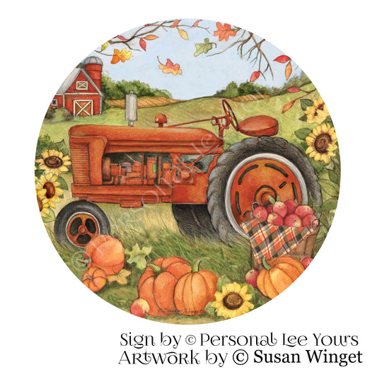 Susan Winget Exclusive Sign * Harvest Tractor * Round * Lightweight Metal
