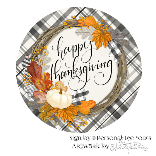 Nicole Tamarin Exclusive Sign * Plaid Fall, Happy Thanksgiving * Round * Lightweight Metal