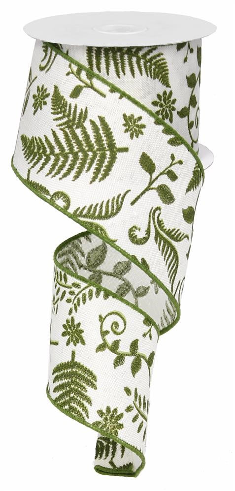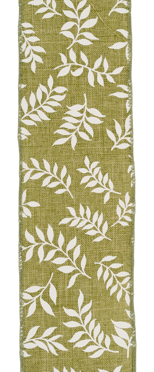 Wired Ribbon * Laurel Leaf * Fern Green and White * 2.5" x 10 Yards Canvas * RGF11352Y