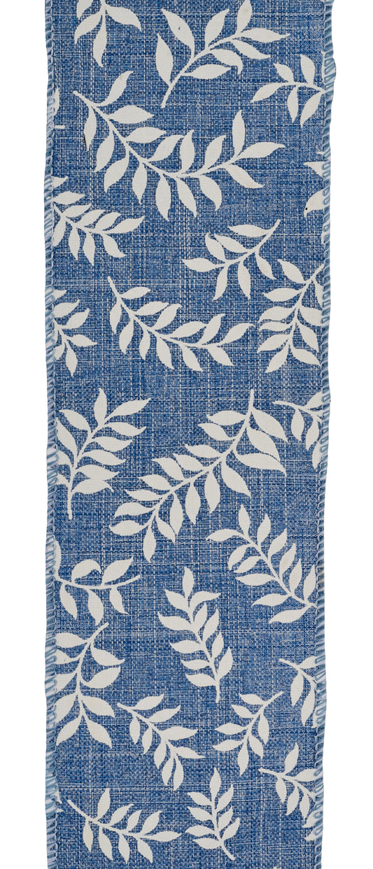 Wired Ribbon * Laurel Leaf * Denim Blue and White * 2.5" x 10 Yards Canvas * RGF113565