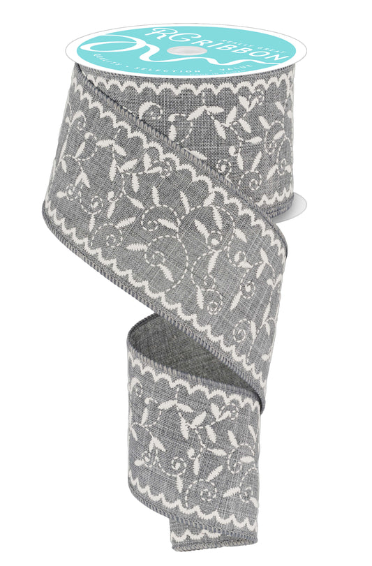 Wired Ribbon * Stitch Mini Leaf * New Grey and White * 2.5" x 10 Yards Canvas * RGF116810