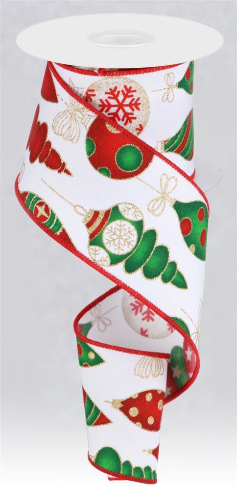 Wired Ribbon * Hanging Christmas Ornaments * White/Red/Green/Gold Canvas * 2.5" x 10 Yards * RGC169027