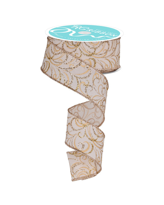 Wired Ribbon * Multi Swirls * Cream/Champagne/Gold Canvas * 1.5" x 10 Yards * RGF1334C2
