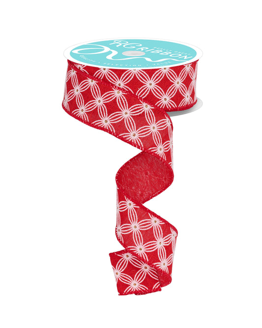 Wired Ribbon * Multi Circles and Dots * Red/White/Gold * 1.5" x 10 Yards * RGF135036