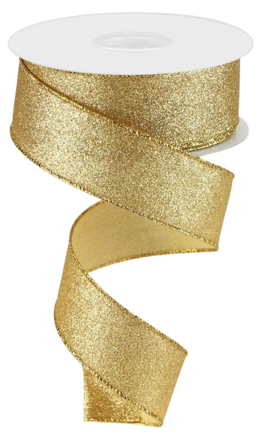 Wired Ribbon * Shimmer Glitter * Gold * 1.5" x 10 Yards Canvas * RGC159608