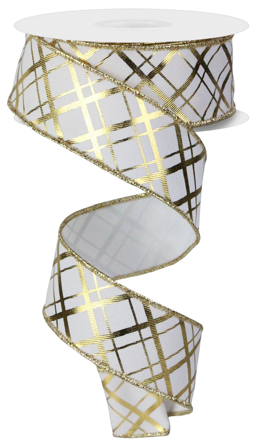 Wired Ribbon * Metallic Thick/Thin Diagonal * Gold and White * 1.5" x 10 Yards * Canvas * RGE1673K3