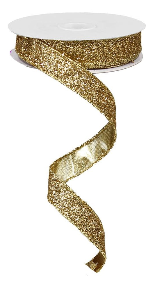 Wired Ribbon * Glitter Gold Shimmer Canvas * 5/8" x 10 Yards * RGF108908