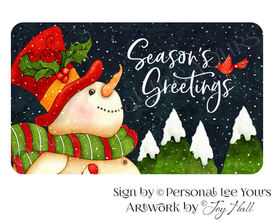 Joy Hall Exclusive Sign * Season's Greetings Snowman * Horizontal * 3 Sizes * Lightweight Metal