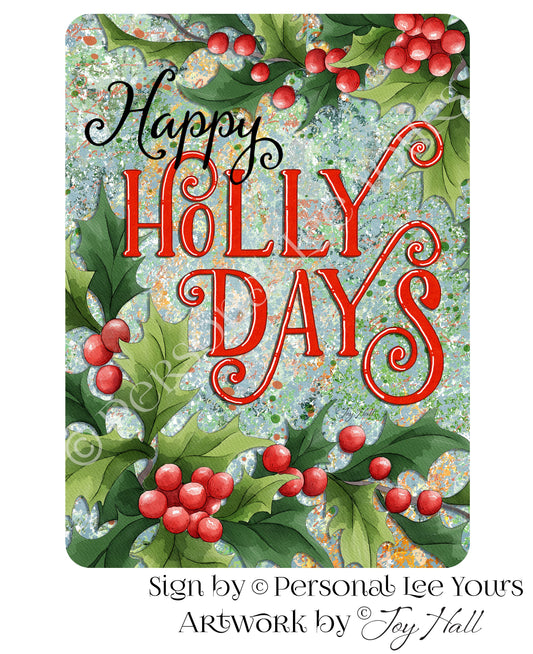 Joy Hall Exclusive Sign * Happy Holly Days * Vertical * 2 Sizes * Lightweight Metal