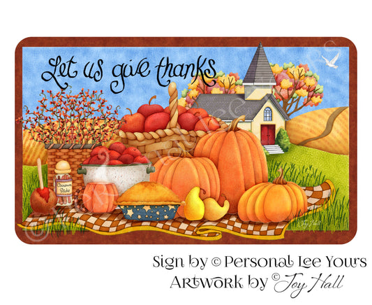 Joy Hall Exclusive Sign * Let Us Give Thanks * 3 Sizes * Lightweight Metal