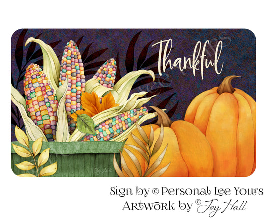 Joy Hall Exclusive Sign * Thankful Indian Corn * Horizontal * 3 Sizes * Lightweight Metal