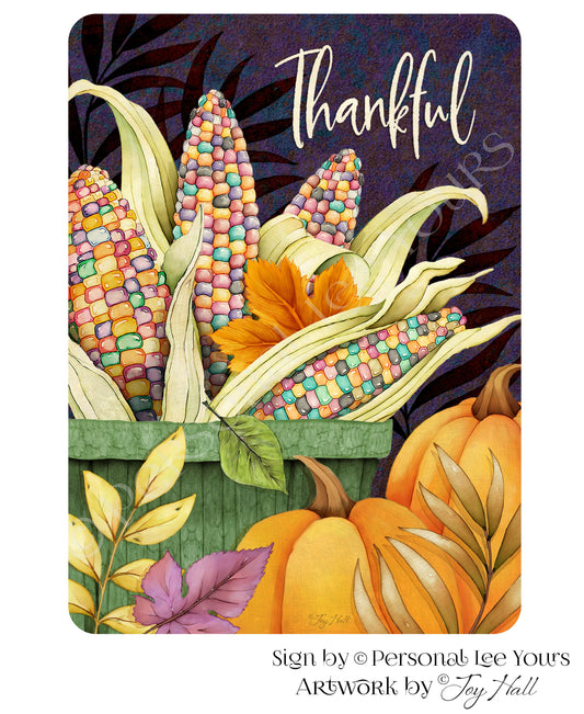 Joy Hall Exclusive Sign * Thankful Indian Corn * Vertical * 2 Sizes * Lightweight Metal