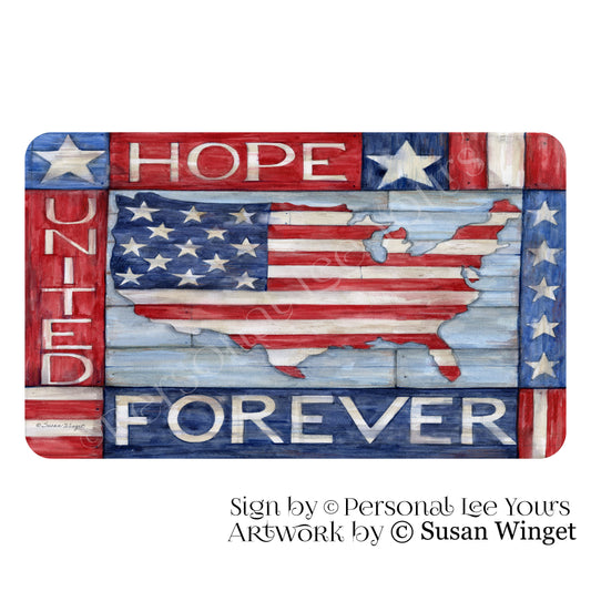 Susan Winget Exclusive Sign * US Flag Map * Horizontal * 4 Sizes * Lightweight Metal