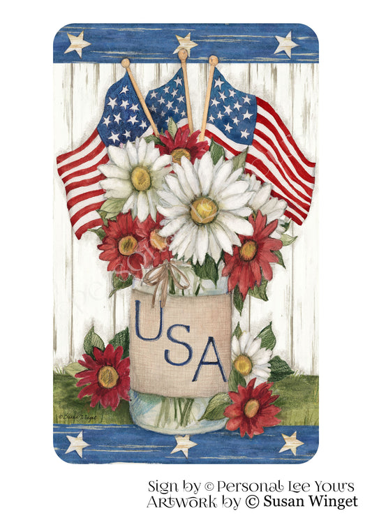 Susan Winget Exclusive Sign * Patriotic Mason Jars * Vertical * 4 Sizes * Lightweight Metal