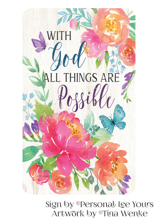 Tina Wenke Exclusive Sign * With God All Things Are Possible * Vertical * 4 Sizes * Lightweight Metal