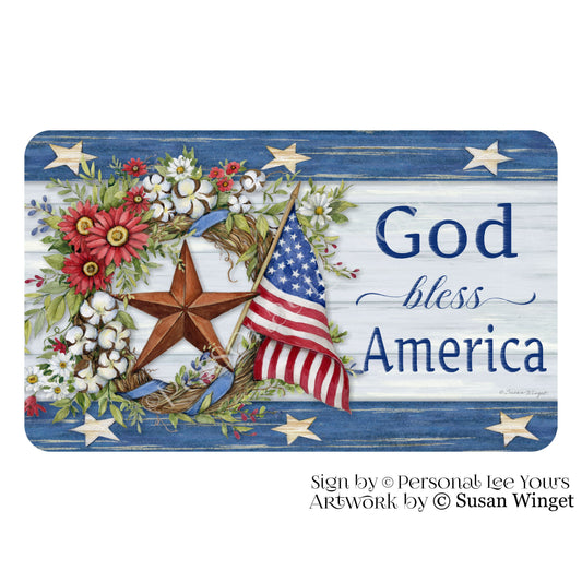 Susan Winget Exclusive Sign * Patriotic Floral Wreath * Horizontal * 4 Sizes * Lightweight Metal