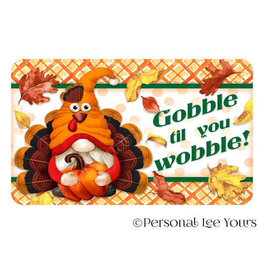 Thanksgiving Wreath Sign * Turkey Gnome * Gobble Til You Wobble * Horizontal * 4 Sizes * Lightweight Metal