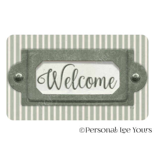 Wreath Sign * Farmhouse Bookplate Welcome * Green * 4 Sizes * Horizontal * Lightweight Metal