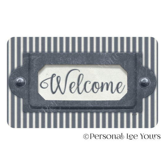 Wreath Sign * Farmhouse Bookplate Welcome * Navy * 4 Sizes * Horizontal * Lightweight Metal