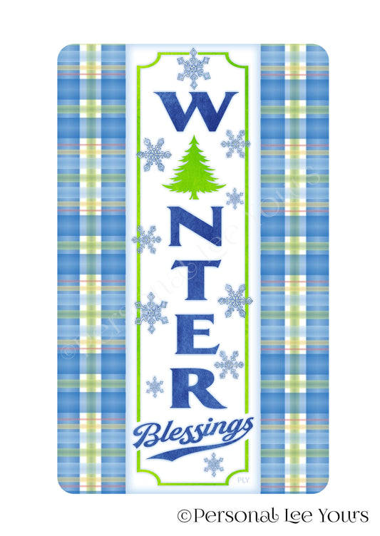 Winter Wreath Sign * Blue And Green Winter Blessings * Vertical * 4 Sizes * Lightweight Metal